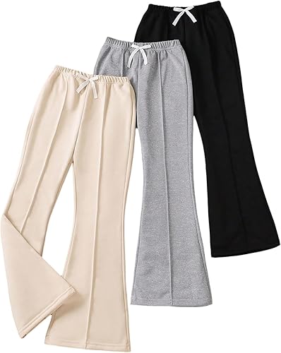 SHENHE Girl's 3 Pack Sweatpants Flare Leg Elastic Waist Athletic Sweatpants Workout Active Pants