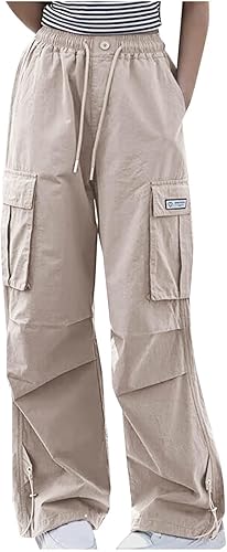 Girls Cargo Pants Teen Girls Y2k Fashion Streetwear High Waist Drawstring Sweatpants Casual Wide Leg Baggy Trousers