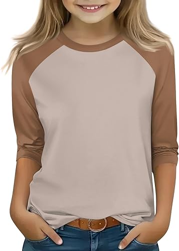 Cute Tops for Teen Girls 3/4 Sleeve Crew Neck Graphic Blouses Workout Three Quarter Sleeve Tops Summer Kids Clothes