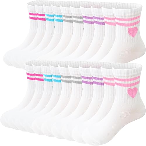Bemeol Girls Crew Socks 10 Pairs Girl Casual Athletic Cotton Lightweight Stretch Crew Socks for Kids 4-6 6-8 8-10 Years Old