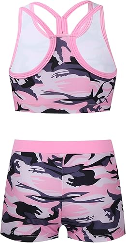 Girls Two Pieces Dance Outfit Y-Back Crop Top with Booty Shorts Kids Gymnastics Yoga Sport Dancewear