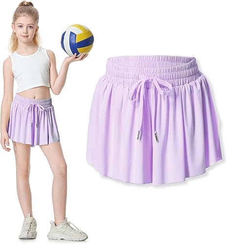 Two Inches Extended Butterfly Shorts Girls Flowy Shorts, 2-in-1 Youth Girls Athletic for Fitness, Running, Sports