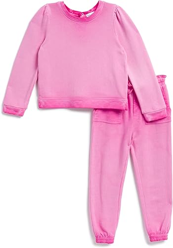 SHENHE Girl's Sweatsuit Set 2 Piece Outfits Bow Lace Crewneck Sweatshirt and Loose Sweatpants Tracksuit