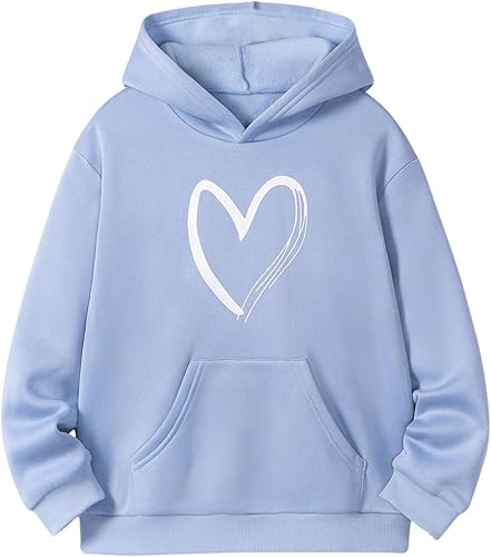 Floerns Girl's Hearts Print Long Sleeve Hooded Neck Pullovers Hoodie Sweatshirts