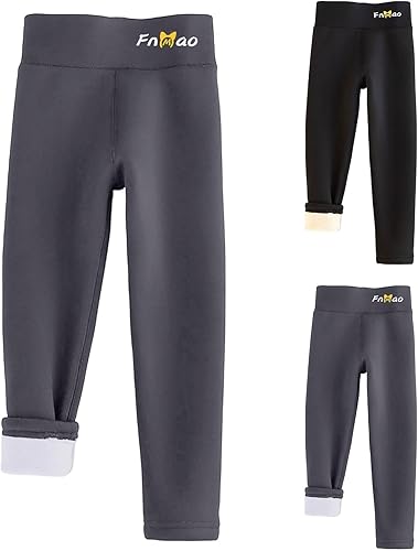 Girls Thermal Fleece Lined Leggings Elastic High Waist Stretchy Sherpa Lined Tights Winter Warm Soft Cozy Trousers