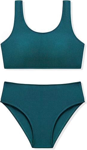 Girls Two Piece Swimsuits Ribbed Bikini Sets Swimming Bathing Suit Beach Sport Athletic Teen Girls Swimwear
