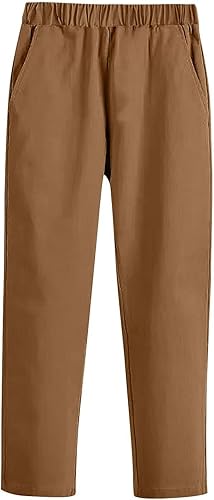 Teen Girls Preppy Cotton Linen Pants Summer Lightweight Loose Fit Elastic Waist Plus Size Solid Lounge Long Trousers