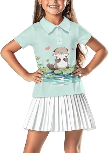 Girls Golf Shirt Short Sleeve Button Up Golf Tennis Shirts Kids Athletic Workout Golf Tops for 5-16 Years Old