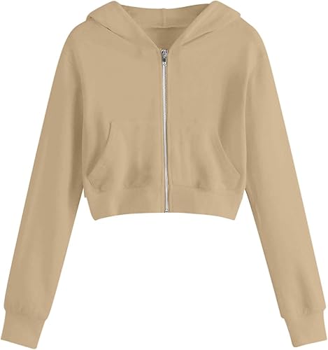 Hoodies for Teen Girls Cropped Long Sleeve Zip Up Jacket Workout Hooded Sweatshirt Y2K Girls Cute Crop Coats Clothes
