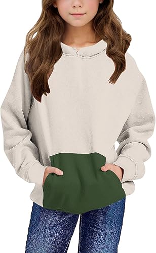 DDAPJ pyju Cute Hoodies for Girls Vintage Colorblock Hooded Sweatshirts Kids Long Sleeve Fleece Pullover Tops with Pocket