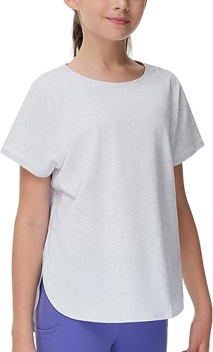 THE GYM PEOPLE Girl's Athletic Shirts Short Sleeve Workout Tops Kids Basic Tees with Side Slits