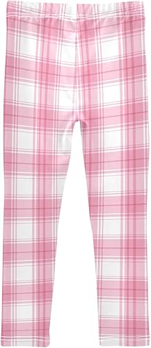 Pink Plaid Gingham Girls Leggings Toddler Kids Yoga Pants Dance Clothing Active Ballet Tights for Child Teens 7-8T
