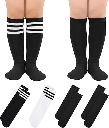 Century Star 4 Pairs Kids Child Soccer Socks Toddler Cotton Soccer Socks Stripes Knee High Soft Tube Socks Boys Girls