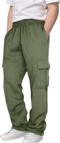 Kids Cargo Cotton Sweatpants Baggy Wide Leg Elastic Waist Sweat Pants Fall Thick Warm Outdoor Long Trousers with