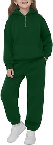 Girls Boys Sweat Suit Set 2 Piece Soft Fleece Tracksuit Set Quarter Zip Hooded Sweatshirt & Jogger Sweatpants Plain Sweatsuit