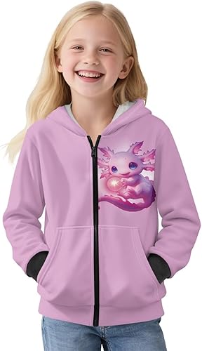 Gomyblomy Girls Zip Up Hooded Sweatshirts Kids Teens Cute Fleece Hoodies Fall Winter Jackets with Pockets 6-16 Years