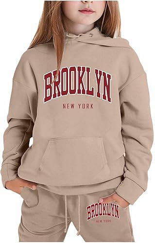 Girls Hoodie and Sweatpants Set 2 Piece Brooklyn New York Hooded Comfy Fall Children Outfits Long Sleeve Casual Cozy