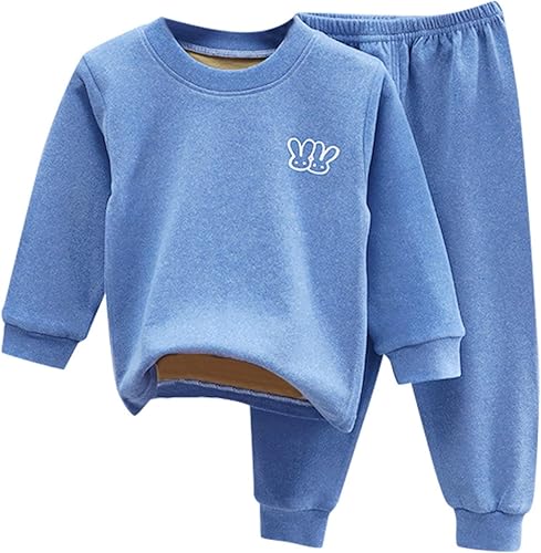 Boys Girls Thermal Underwear Set Cute Rabbit Long Sleeve Crewneck Elastic Waist Pants Set Fall Winter Warm Clothes