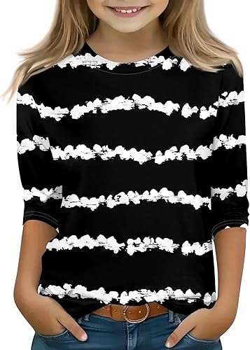 Girls Athletic Shirts 3/4 Sleeve Crewneck Cute Tops Casual Fall Loose Soft Lightweight Fashion Clothes for 5-16 Years