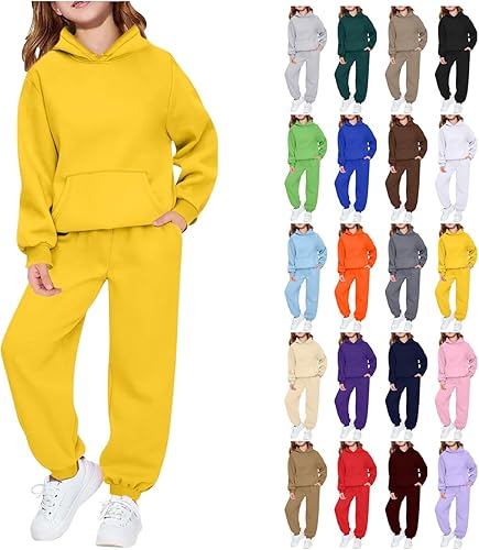YKR Kids Sweatsuit Girls Boys Fleece 2 Piece Outfits Hooded Sweatshirt and Jogger Sweatpants Athletic Clothing Sets