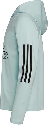 adidas Girls' Big Long Sleeve Hooded Graphic Tee, Alms Blue, Large