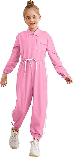 DINORMIN Kids Coveralls for Girls Mechanic Boiler Suit Casual Jumpsuit One Piece Zipper Front Coverall
