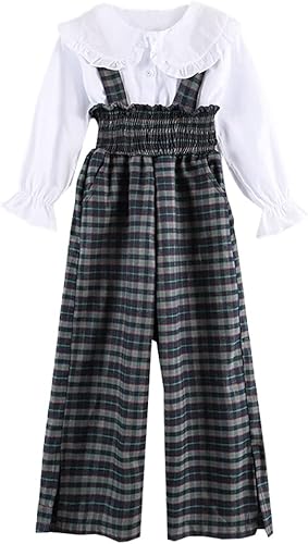 Peacolate 5-14T Little Big Girls Clothing Set 2pcs White Shirt and Overalls