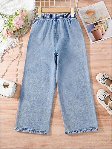 Girls Wide Leg Jeans Straight Elastic Waist Cute Denim Pants Kids Trendy Y2K Streetwear Fall Trousers with Pockets