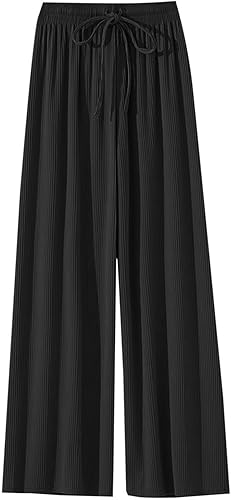 Girls Linen Wide Leg Pants High Waisted Drawstring Palazzo Pants Breathable Summer Casual Trousers Linen-Blend Bottoms