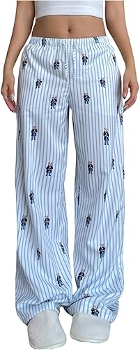 Milumia Girl's Striped Graphic Drawstring Waist Pants Wide Leg Loose Casual Lounge Trousers