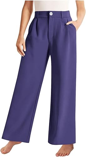 Girls Pull On Dress Pants Relaxed Fit Formal School Uniform Trousers High Waisted Straight Leg Pants Preppy Trousers