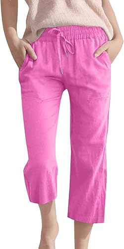 Girls Linen Capri Pants Straight Leg Cropped Sweatpants Drawstring Kids Solid Casual Loose Elastic Waist Pant