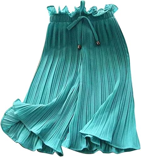Generic Toddler Girls Summer Casual Pants Ruffles Loose Wide Leg Stretchy Waist Pants Kids Girls Solid Color (Green, 4-5 Years)