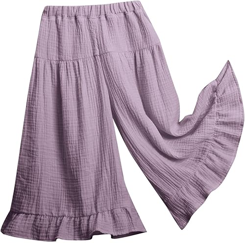 Generic Toddler Girls Summer Seven Pants Baby Girls Solid Color Thin Ruffles Loose Wide Leg Stretchy Waist (Grey, 9-10 Years)