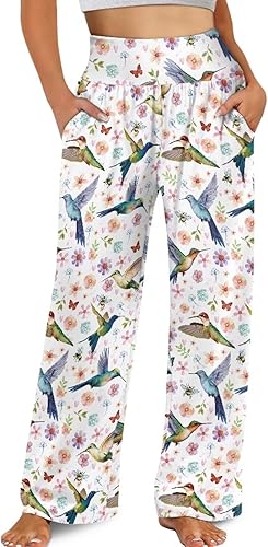 Generic Wide Leg Pants for Women Stretch High Waisted Cotton Linen Palazzo Pant Loose Casual Comfy Summer Trouser with Pocket