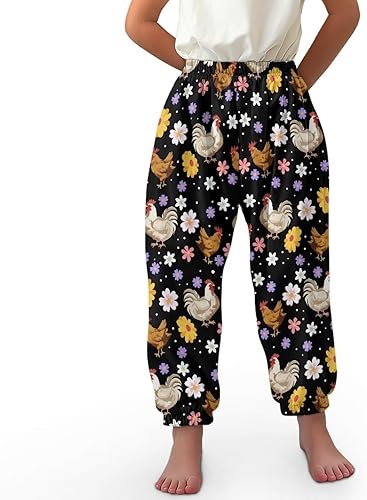JEATHA Girls Wide Leg Pants Loose High Waist Elastic Pull-On Harem Trousers Fashion Kids Breathable Pjs Bottoms