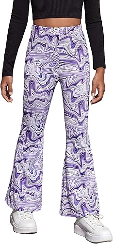 WDIRARA Girl's Marble Graphic Print Elastic Waist Flare Leg Pants Casual Long Pants