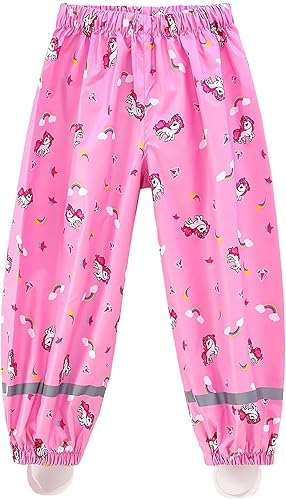 M2C Boys Girls Cotton Lined Waterproof Rain Pant Reflective Lightweight Rainwear