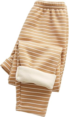 Toddler Girls Sherpa Lined Pants Striped Elastic Waist Padded Fleece Sweatpants Boys Casual Fall Winter Thermal Leggings