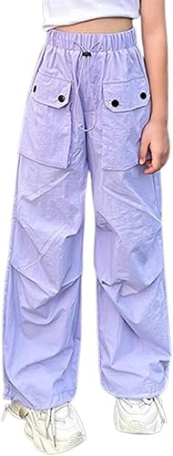 Girls Cargo Pants Lightweight Breathable Straight Leg Wide Trousers Comfortable Loose Fit for Hot Weather Casual