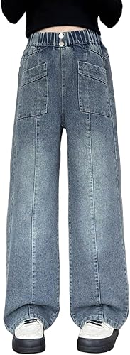 Jeans for Girls Wide Leg Baggy Denim Pants Cute High Waisted Trousers Teen Casual Y2k Streetwear with Pockets 5-17Y