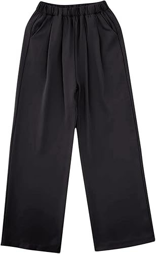 Kids Girls Baggy Straight Pants Elastic Waist Wide Leg Solid Color Relaxed Joggers Soft Sweatpants Casual Loose Trouser