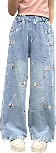 Straight Jeans for Girls Baggy Slim Denim Pants Kids Stylish Wide Leg High Waist Trousers with Pockets