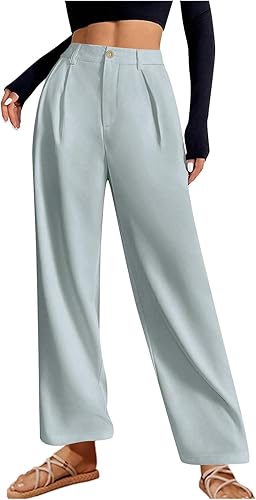 Wide Leg Pants Woman High Waisted Business Casual Dress Work Pants Pull On Stretchy Pleated Trousers with Pockets