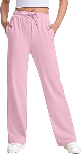 Sweatpants for Girls 10-12 Cute Elastic High Waisted Sweat Pants Summer Casual Workout Wide Leg Pants with Pockets