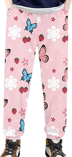Dreaweet Cute Sweatpants for Girls Boys, Kids Graphic Jogger Pants 4-15 Years Casual Athletic Trousers with Pockets