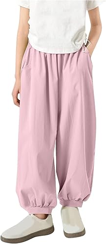 Girls Summer Sun Protection Pants Breathable Loose Comfy Elastic Waist Anti-Mosquito Joggers Long Pants for 5-15 Years