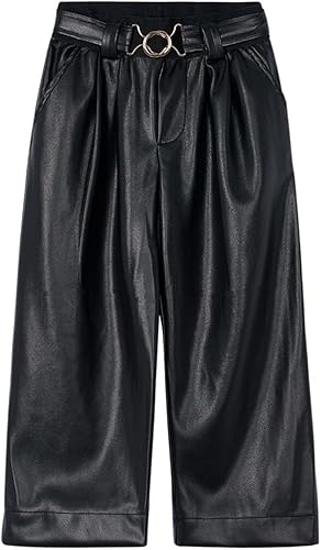 Big Girls Elastic Waist Pleated Chiffon Cropped Wide Leg Ruffle Flowy Pants Loose Trousers
