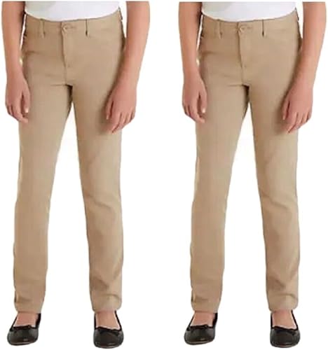 French Toast Youth Girl's 2 Pack Stretch Knit Pants with Adjustable Waist (US, Numeric, 8, Regular, Khaki)