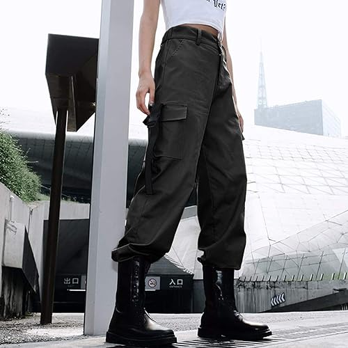 Girls Fashion High Waisted Loose Casual Cargo Pants Solid Color Sweatpants Streetwear Boot Cut Pants with (Black, S)